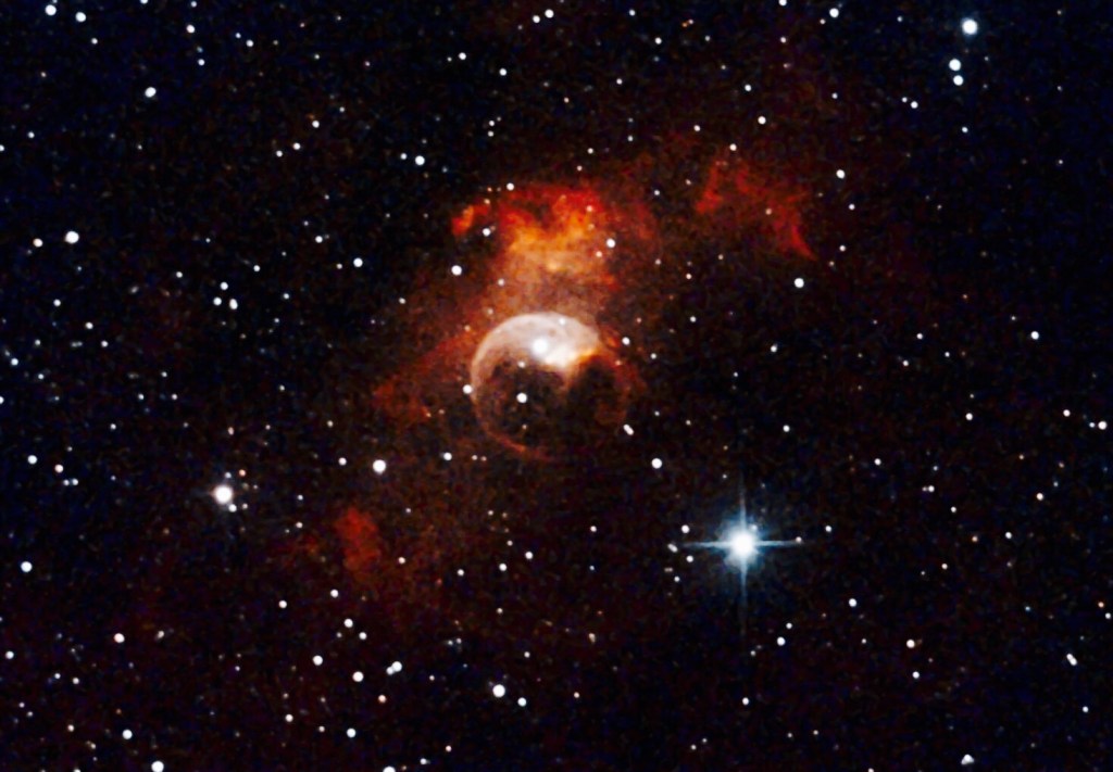 È individuabile vicinissimo all’ammasso aperto M52, al punto che a bassi ingrandimenti appare nello stesso campo visivo; la sua caratteristica principale è una “bolla” di vuoto circondata da una nebulosa, visibile con potenti strumenti nella zona meridionale dell’oggetto, causata dal vento stellare della giovane stella centrale, di magnitudine 8,7.
